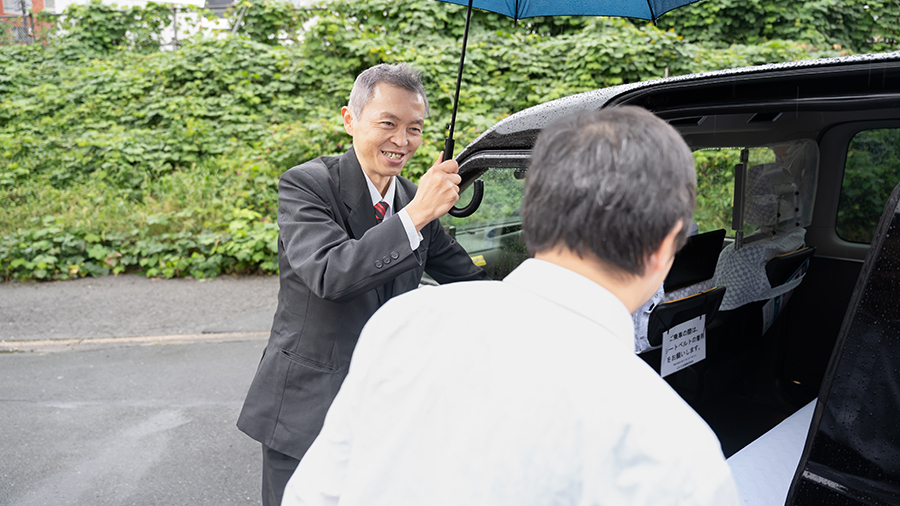 例えば、定期送迎や来客者の空港送迎、社員の出張、研修・会議・接待時の移動、葬儀場への送迎など。大切な来客者を安心・安全に送迎したり、社員の出張・通勤の便利な足になったりと、さまざまなご要望にお応えいたします。
